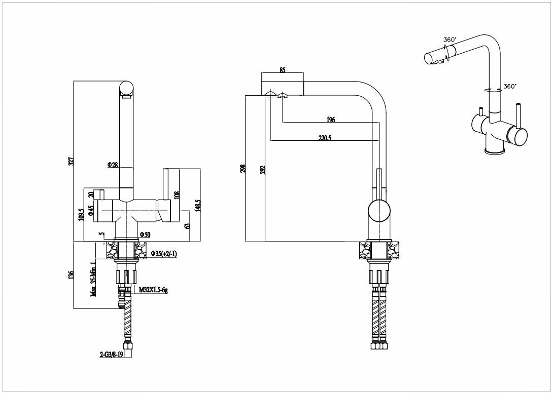 Особенности>аэратор, Гибкая подводка, Поворотный, С краном для питьевой воды