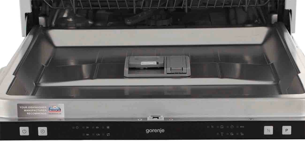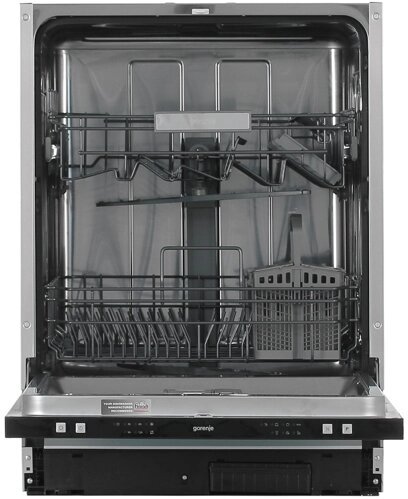Встраиваемая посудомоечная машина Gorenje GV61212 это полноразмерная вместительная модель шириной 60 см, которая, тем не менее, полностью закрывается кухонным фасадом. За счет большого размера двух корзин туда помещаются и кастрюли, и противни, и весь набор посуды после семейной трапезы. Есть половинная загрузка и самоочистка фильтра, что очень удобно для ухода за прибором. Панель управления простая кнопочная, со световой индикацией, будет легко разобраться даже неопытному пользователю. Бак выполнен из нержавеющей стали. Завершение цикла сопровождается звуковым сигналом.