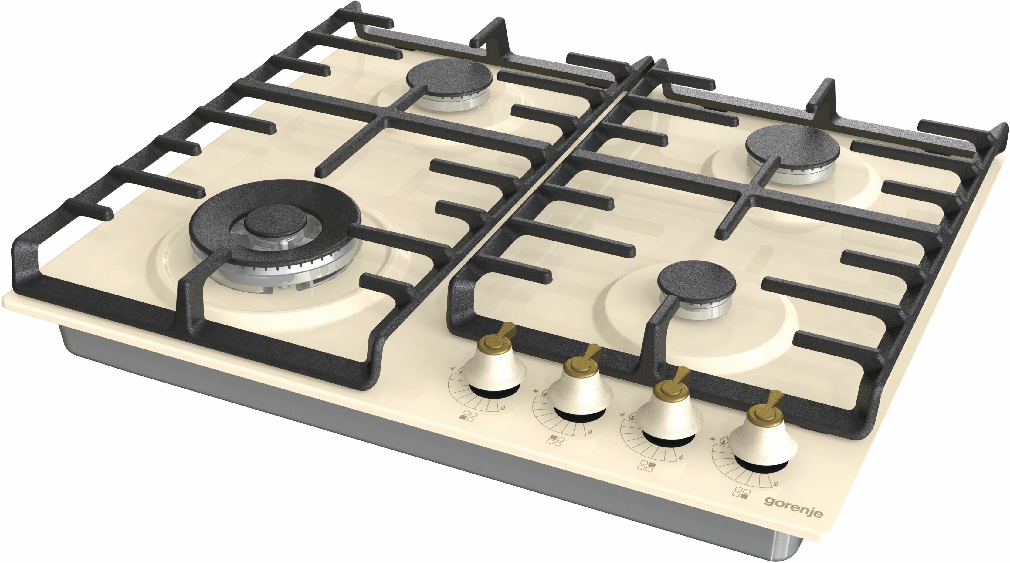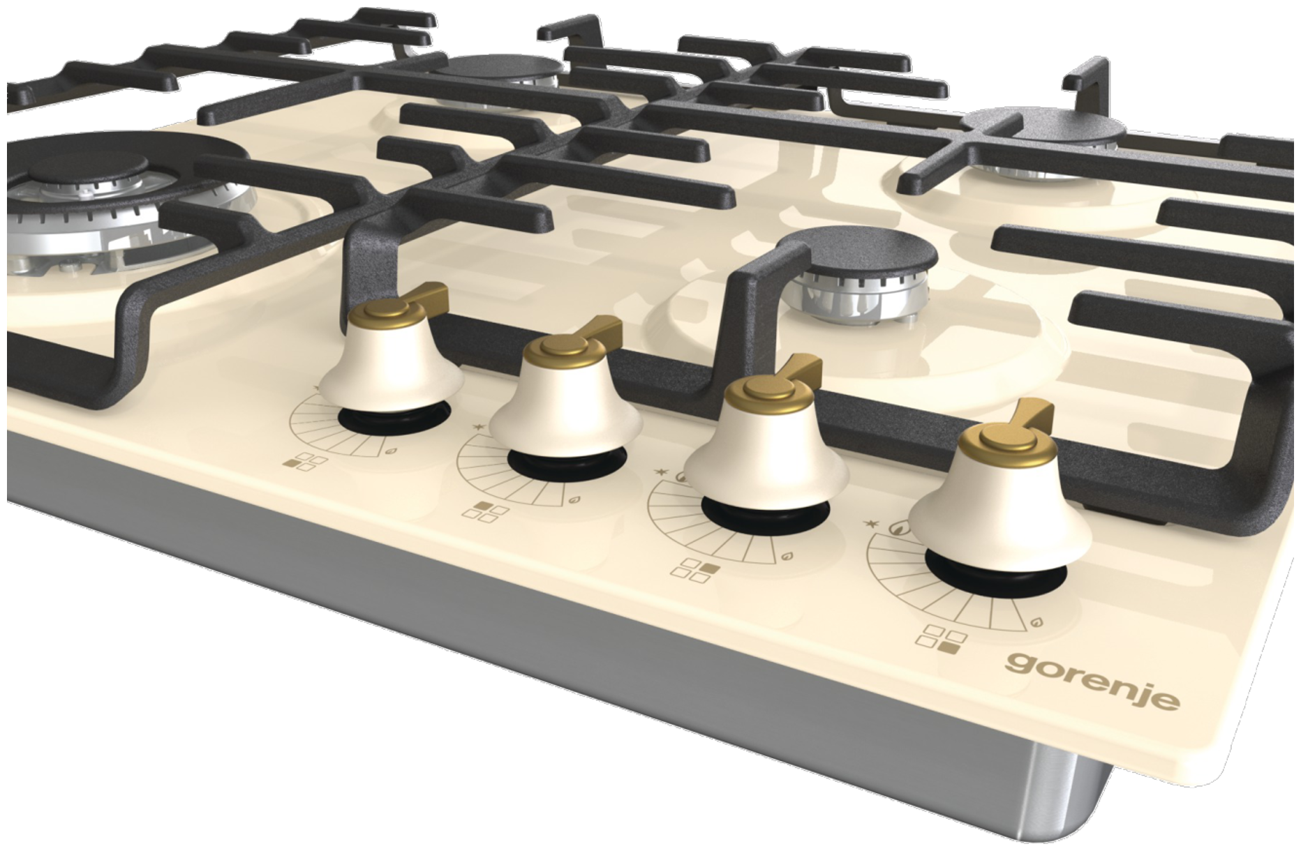 Независимая варочная панель Gorenje GW642CLI выполнена в цвете слоновой кости с бронзовой фурнитурой.