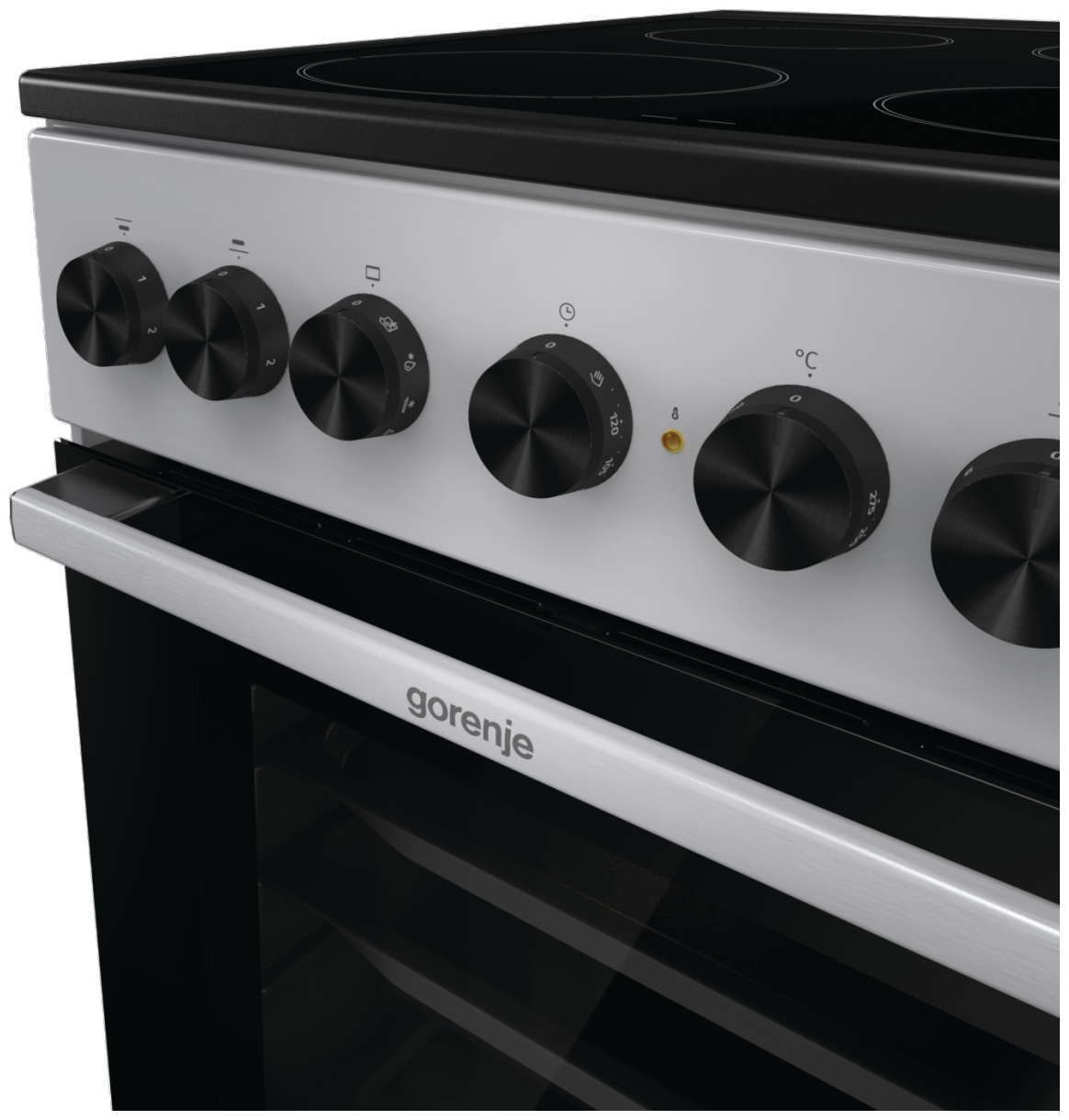Электрическая плита Gorenje GEC5B41SG выполнена в сочетании чёрного и серого. Такой вариант идеален для современных помещений. В нижней части корпуса имеется специальный ящик для хранения сковородок и противней. Так вся посуда будет под рукой. Выставить настройки можно с помощью поворотных регуляторов. Они отвечают за конфорки варочной панели, температуру, режимы работы духового шкафа, а также таймер. Он звуковым сигналом сообщит об истёкшем времени, а также автоматически отключит прибор.