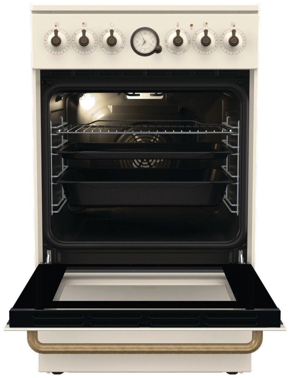 Электрическая плита Gorenje GECS5B70CLI — изящная и стильная модель из линейки Classico, выполненная в ретро-стиле. Нежный кремовый цвет фасада подчеркивает бронзовая фурнитура, а аналоговый программатор, которым дополнены поворотные переключатели эргономичной формы, не только идеально вписывается в общий образ, но и помогает легко выбирать все необходимые параметры работы, а также служит часами. Также доступна опция установки таймера, что позволяет точно соблюсти время приготовления.