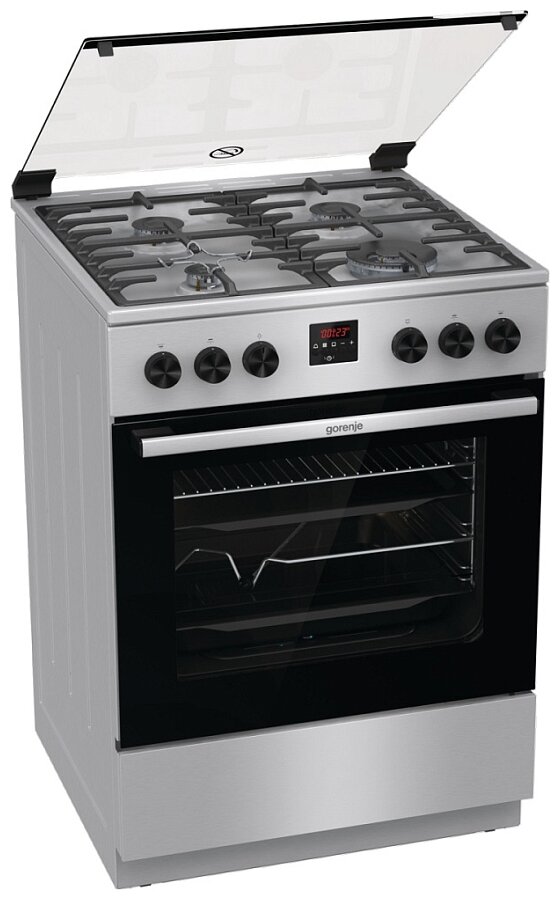 Газовая плита Gorenje GGI6C20XA — надежная модель с простым механическим управлением. Рабочая поверхность из нержавеющей стали и чугунные держатели для посуды. Встроенный электронный газовый программатор, система электроподжига конфорок и духовки делает использование удобным и безопасным.