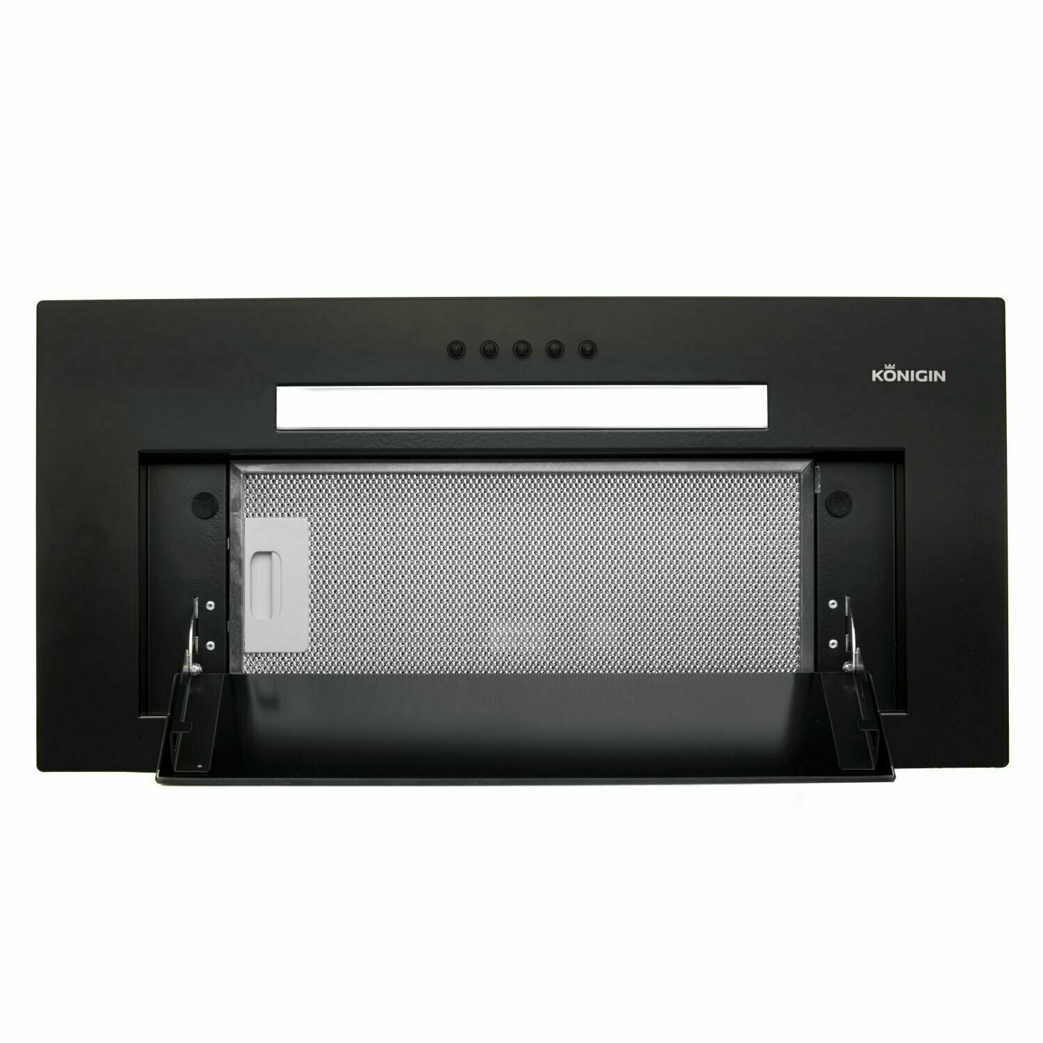 • Полностью встраиваемая вытяжка. Стильное сочетание закаленного стекла и окрашенной стали. Декоративный люк из закаленного стекла скрывает пятислойный алюминиевый, жироулавливающий фильтр с усиленной конструкцией