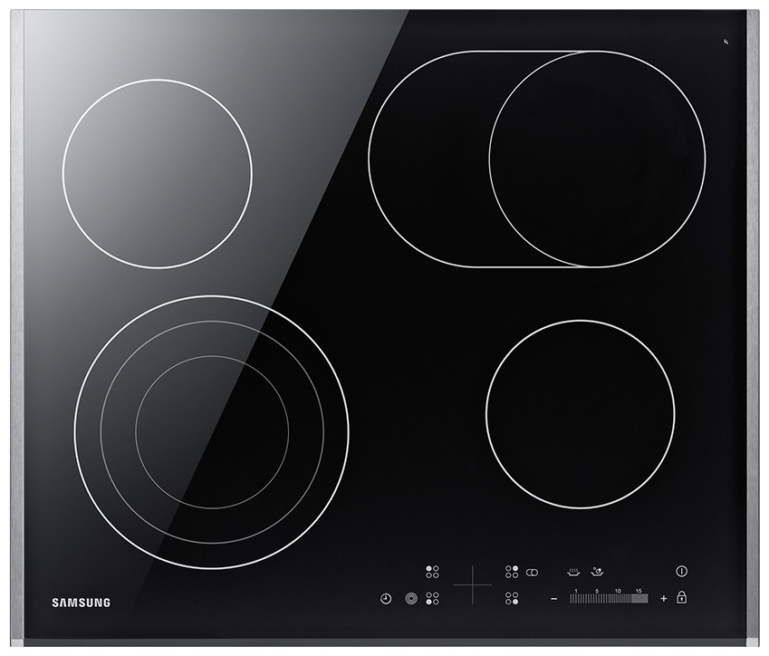 Электрическая варочная панель Samsung NZ64T3536DK, изготовленная из прочной и неприхотливой в уходе стеклокерамики, легко очищается от загрязнений губкой или салфеткой. Модель независимого типа с сенсорным управлением встраивается в кухонные столешницы без подключения к духовому шкафу.