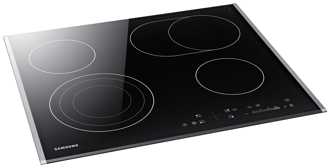 Для удобства использования посуды нестандартных размеров и форм, например, больших сковород или утятниц, в конфорках предусмотрены две расширяющиеся зоны — круглая и овальная. Блокировка управления посредством опции «Защита от детей» предотвращает незапланированную активацию электрической варочной панели Samsung NZ64T3536DK.