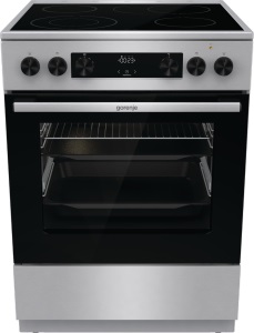 Выполненная из прочной и легко очищающейся от загрязнений стеклокерамики варочная поверхность оборудована четырьмя конфорками Hi-Light. Регулировка интенсивности мощности производится поворотными регуляторами. Благодаря электронному программатору с цифровым дисплеем осуществляется точный контроль за работой электрической плиты Gorenje GEC6C60XA.
