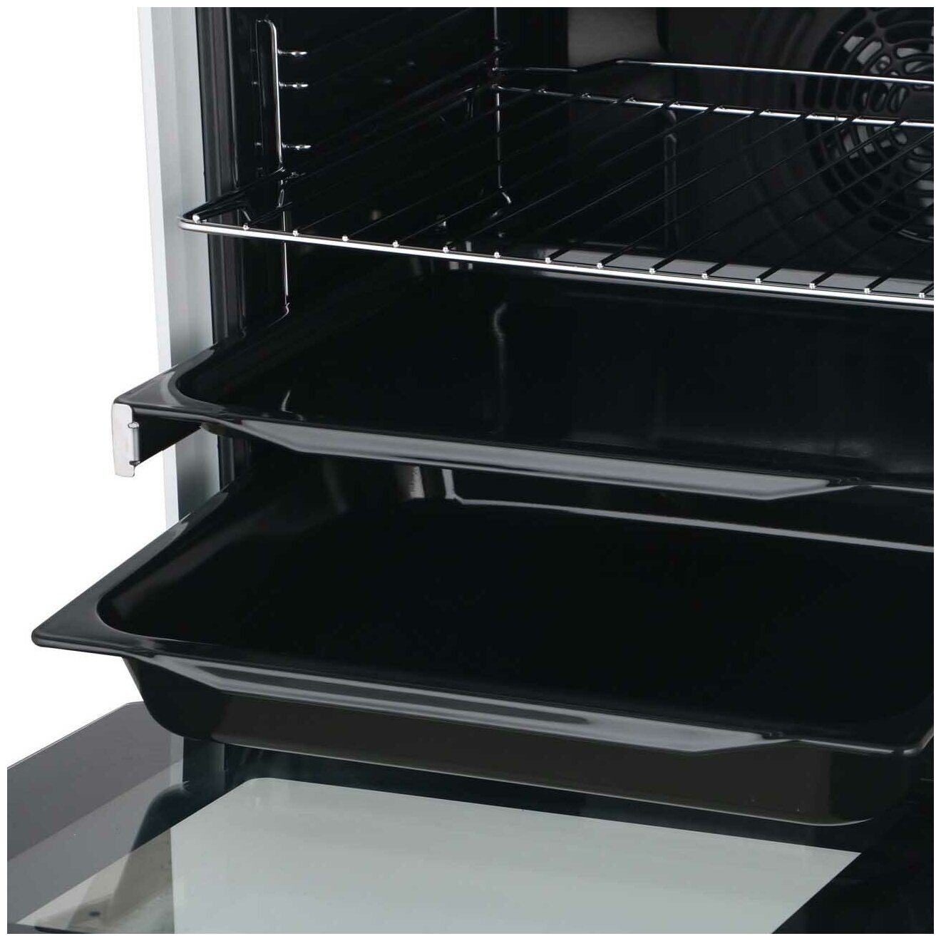 Встроенный цифровой дисплей отображает все основные параметры. Управление производится при помощи поворотных переключателей и сенсорных кнопок. Плита комплектуется глубоким и плоским противнями, металлической решеткой.