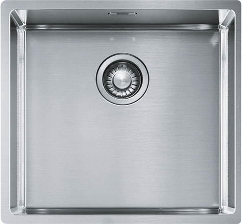 Интегрированная мойка Franke BXX 210-45 из нержавеющей стали для монтажа поверх или вровень со столешницей, а также под ней. Одночашевая модель с плоским кантом поставляется в комплекте со стоп-вентилем.