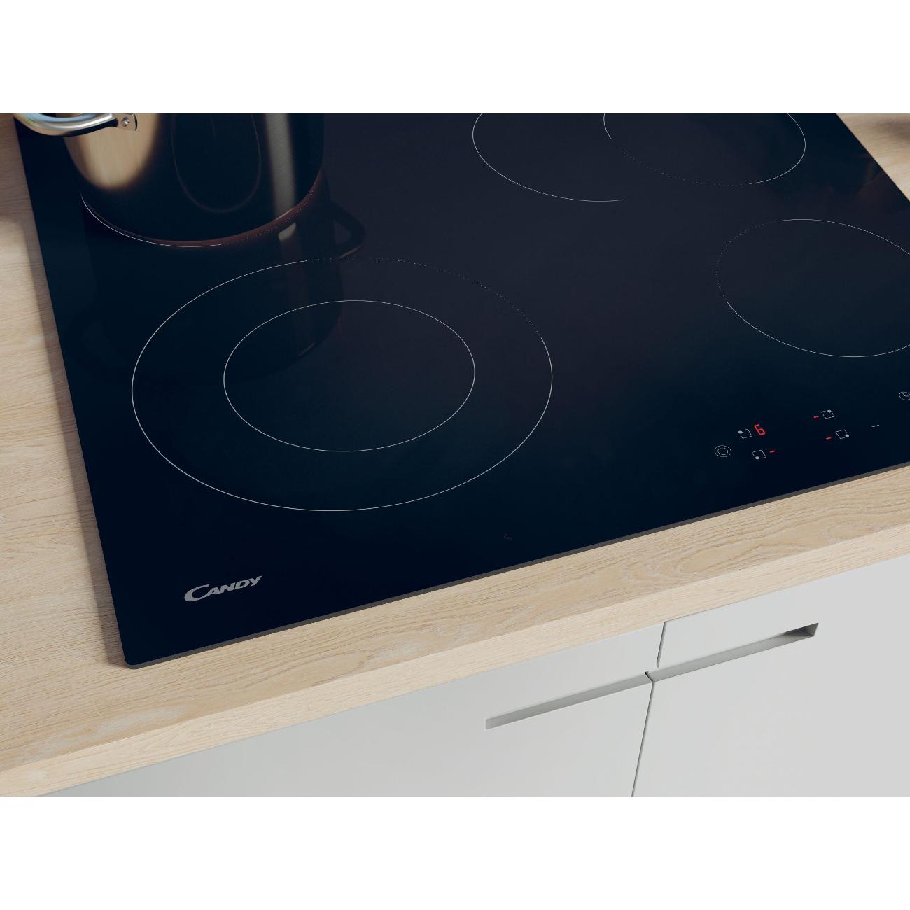 Электрическая варочная панель Candy CEH 6 DXECTT/1 оснащена таймером выключения, который можно установить на удобное время. Модель имеет четыре конфорки, две из которых расширяются для использования емкостей большего объема.
