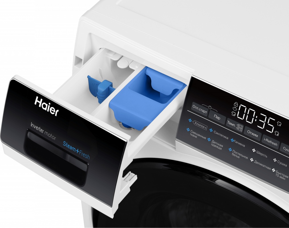 Кроме того, предусмотрены режимы для детской одежды, постельных принадлежностей, а ещё специальный цикл длительностью всего 15 минут, идеальный для слабозагрязнённого белья. ключевое дополнение Функция i-Refresh служит для паровой обработки вещей без добавления воды и, как следствие, излишнего механического воздействия. Таким образом вы быстро приведёте в порядок комплект из шёлковой блузки и атласной юбки, удалите неприятные запахи из волокон свитера и вернёте форму слежавшемуся жакету. главная деталь В «сердце» Haier HWD80-BP14959A – инверторный мотор, который обеспечивает ей предельно рациональное расходование электрической энергии и воды.