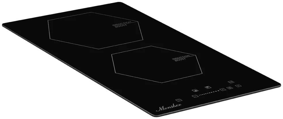 Индукционная варочная панель Monsher MHI 3002 размером 6х29х52 см весит 4,3 кг. Устройство независимого типа может встраиваться в нишу или применяться как отдельный электроприбор присоединительной мощностью 3,5 кВт. На варочной поверхности из прочной и устойчивой к ударам и механическим нагрузкам стеклокерамики располагаются две конфорки.