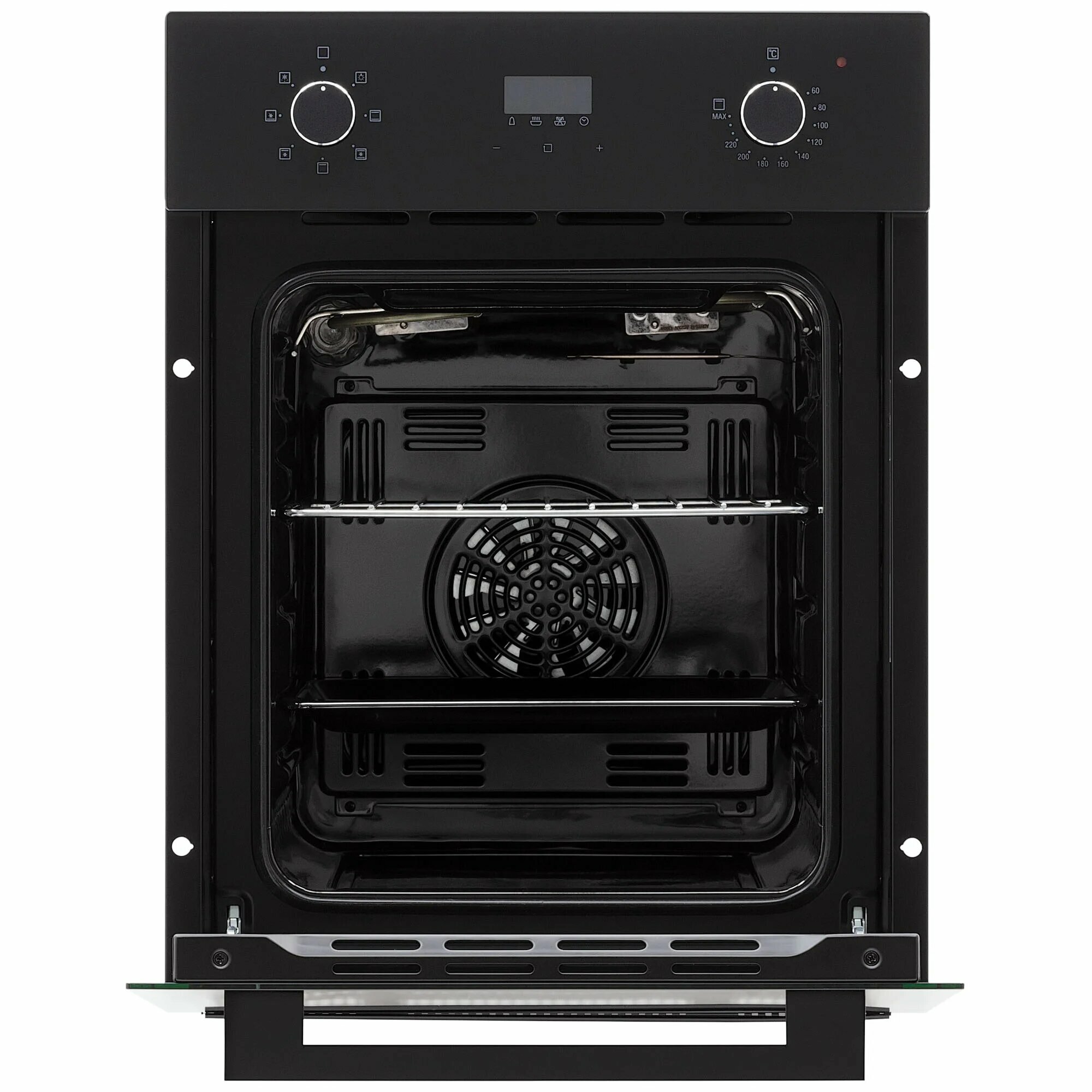 Несмотря на свой компактный размер модель оснащена всеми необходимыми функциями и режимами, что и полноразмерные духовые шкафы: 7 режимов работы, конвекция, гриль, электронный таймер на 1-24 часа, дисплей.