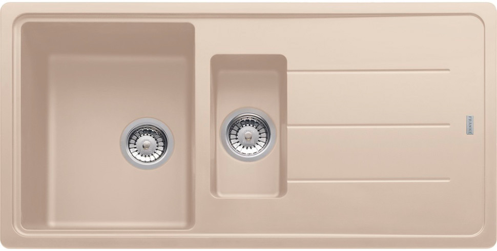 Мойка для кухни с крылом и возможностью установки чаши слева или справа Franke Basis BFG 651 шириной 97 сантиметров, с 2-я чашами прямоугольной формы.