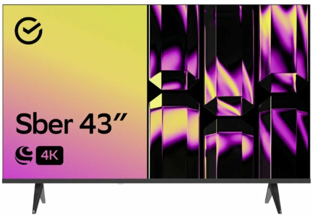 Безрамочный телевизор Sber на российской платформе Салют ТВ. Эфирное телевидение, востребованные видеосервисы и голосовое управление через виртуального ассистента Салют. Разумный выбор для кабинета или небольшой спальни.