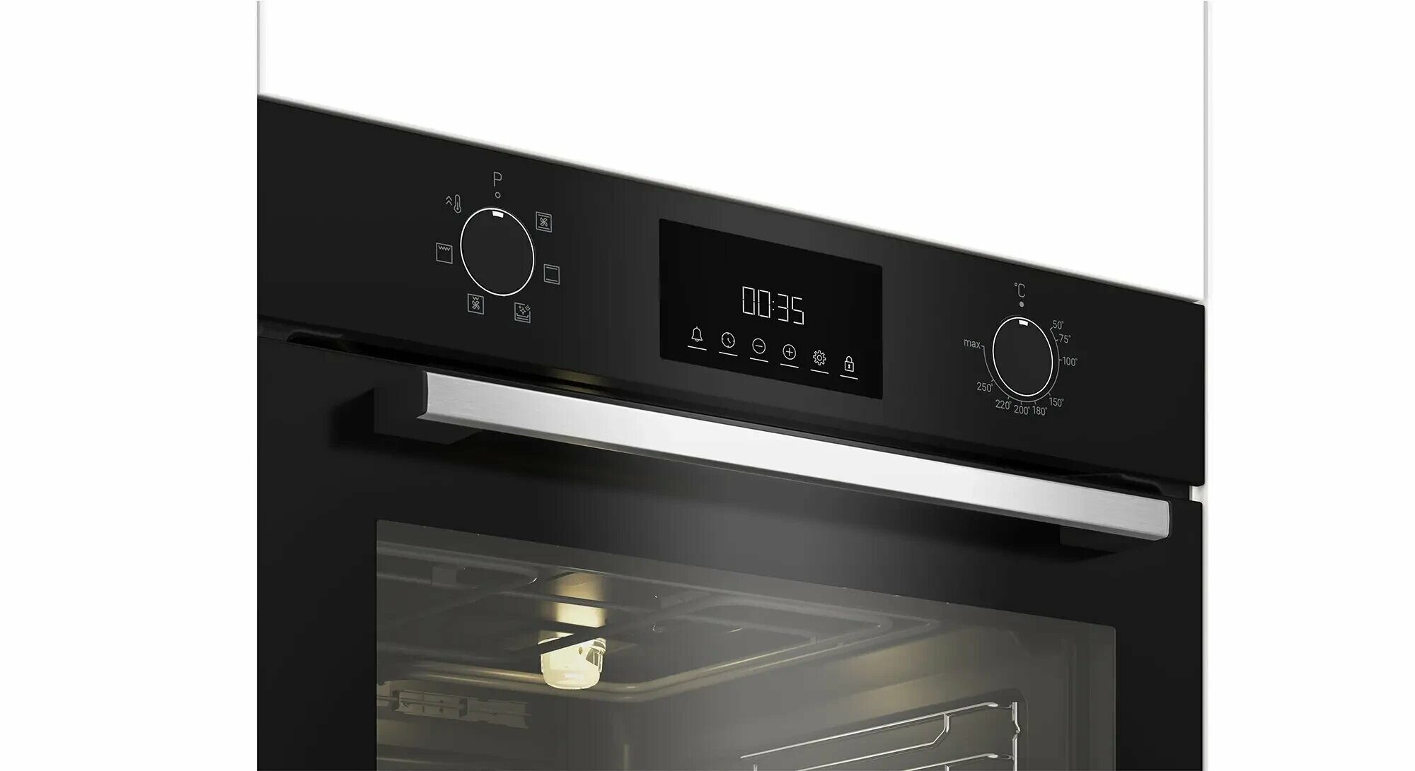 Устройство может работать в 10 режимах, оснащено усиленным грилем, функцией конвекции, кольцевым нагревательным элементом для идеального пропекания любимых блюд даже на нескольких уровнях рабочей камеры. Современная сенсорная панель управления с дисплеем делает управление духовым шкафом максимально понятным и удобным, а отсутствие механических переключателей облегчает чистку.