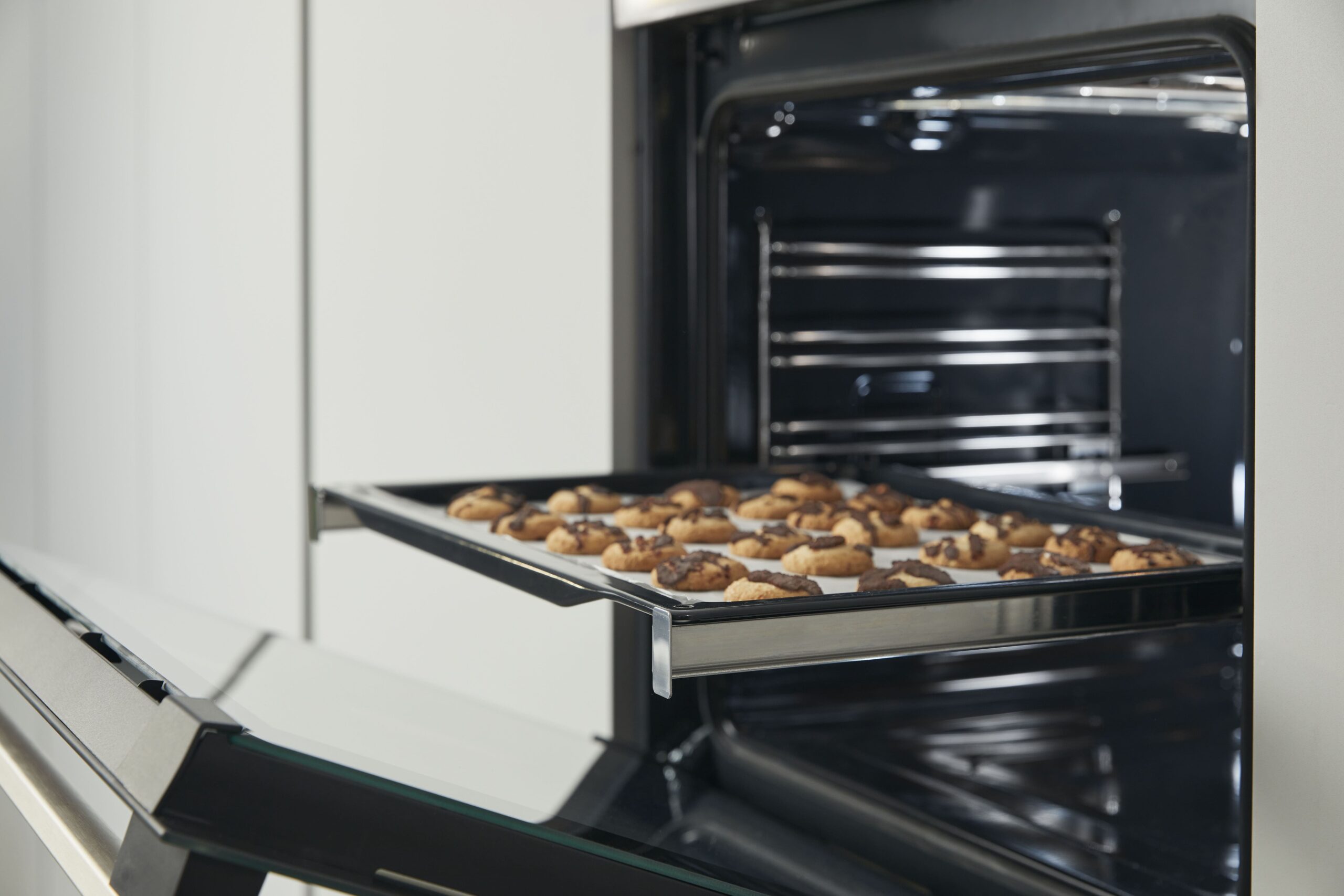 Предусмотрена подсветка светодиодной лампочкой. Вариогриль позволяет без усилий готовить пиццу, мясо, рыбу, птицу. Система очистки AquaClean дает возможность быстро устранить загрязнения — для этого в специальное отверстие заливается вода, включается нужный режим нагрева, грязь размягчается, после чего легко удаляется влажной губкой.