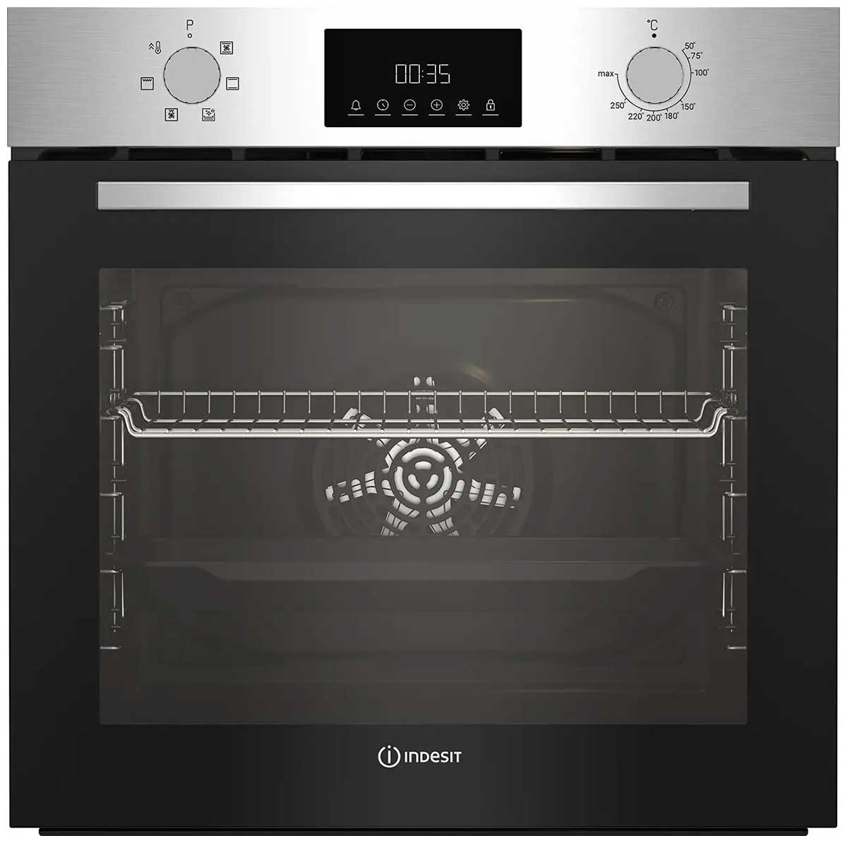Конвекционный духовой шкаф Indesit IFE 3644 J IX с дисплеем, утапливаемыми переключателями и панелью управления в цвете нержавеющей стали сделает процесс приготовления блюд проще и быстрее.