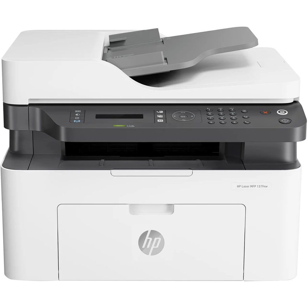 МФУ HP Laser 137fnw с функциями принтера, сканера, копировального аппарата и факса создан с учетом потребностей небольших офисов. Благодаря лазерной технологии он обеспечивает качественную черно-белую печать различных документов формата А4. В качестве носителей для печати подходит разная бумага (обычная, плотная, цветная, хлопковая), картон, этикетки. Для подключения к оборудованию предусмотрены модуль беспроводной связи Wi-Fi, сетевой коннектор RJ-45 и порт USB. Панель с информативным ЖК-дисплеем и кнопками гарантирует удобство выбора нужных параметров МФУ HP Laser 137fnw.