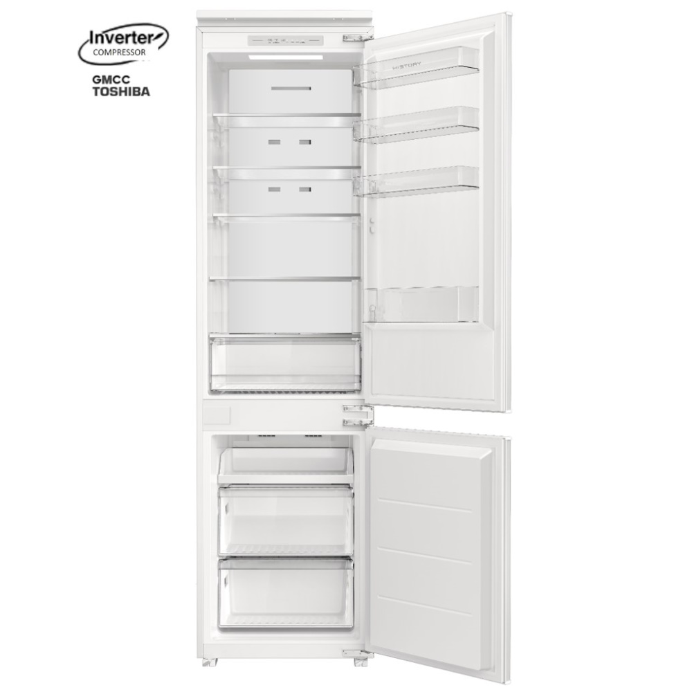 Модель HiSTORY BRB 1940MI объемом 326 л разработан для установки в нише кухонной мебели. В холодильнике реализована технология Total No Frost: cпециальный алгоритм управления микроклиматом холодильника позволяет поддерживать постоянную температуру и влажность внутри обеих камер, что защищает продукты от промерзания. Принудительная циркуляция воздуха позволяет восстанавливать температуру после открытия дверцы, обеспечивает быстрое и равномерное охлаждение.