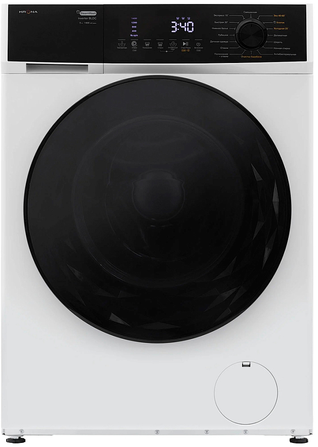 Стиральная машина Krona Rhene Max White 1400 9K WM идеально подходит для больших семей, так как способно стирать до 9 кг белья за один цикл. При этом максимальная скорость отжима достигает 1400 оборотов в минуту, что гарантирует быструю и качественную сушку.