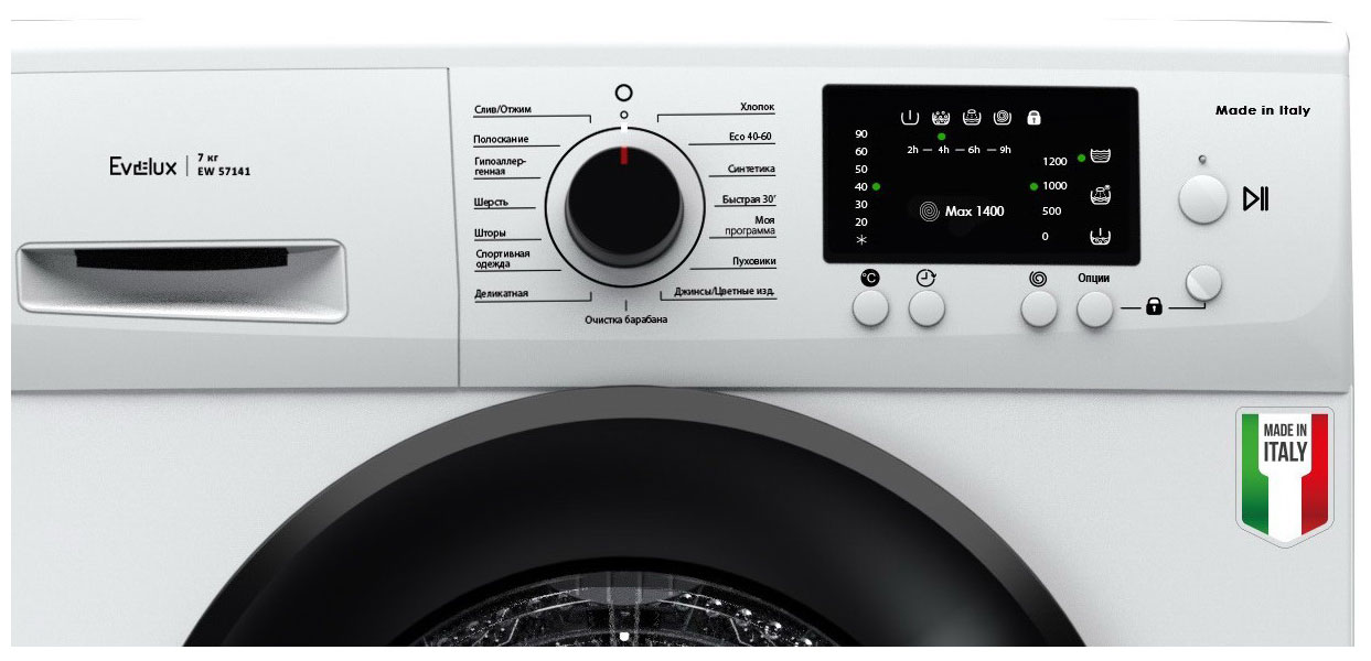 Стиральные машины производятся в Италии и на 100% состоят из Итальянских компонентов, что подтверждается соответствующим символом.