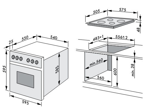Размер духовки: 59,5 * 59,5 * 57,5 см